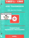 Original 1993 1/2, 1994, & 1995 Mopar OEM Jeep factory 42RE Automatic Transmission Powertrain Diagnostic Procedures Manual for diagnosis, service, and rebuild of Automatic Transmission used in Jeep...