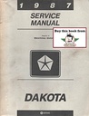 Original Mopar OEM Dodge factory dealer shop service manual for the 1987 Dodge Dakota Pickup. Not a reproduction. This manual set covers all vehicle lines, series, and trim levels of the 1987 Dodge...